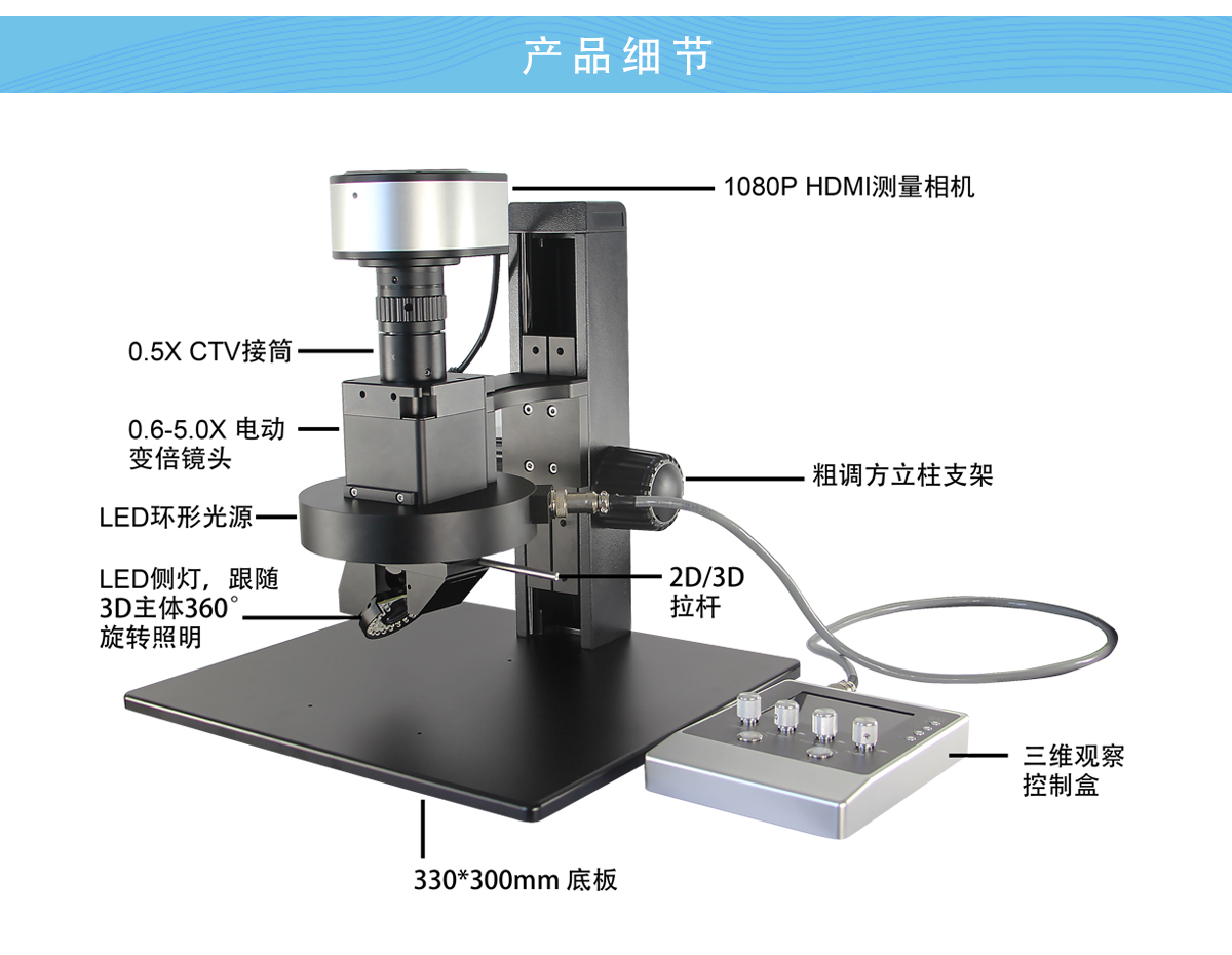 FM3D650AM 电动变倍/电动旋转三维立体 免标定视频测量显微镜