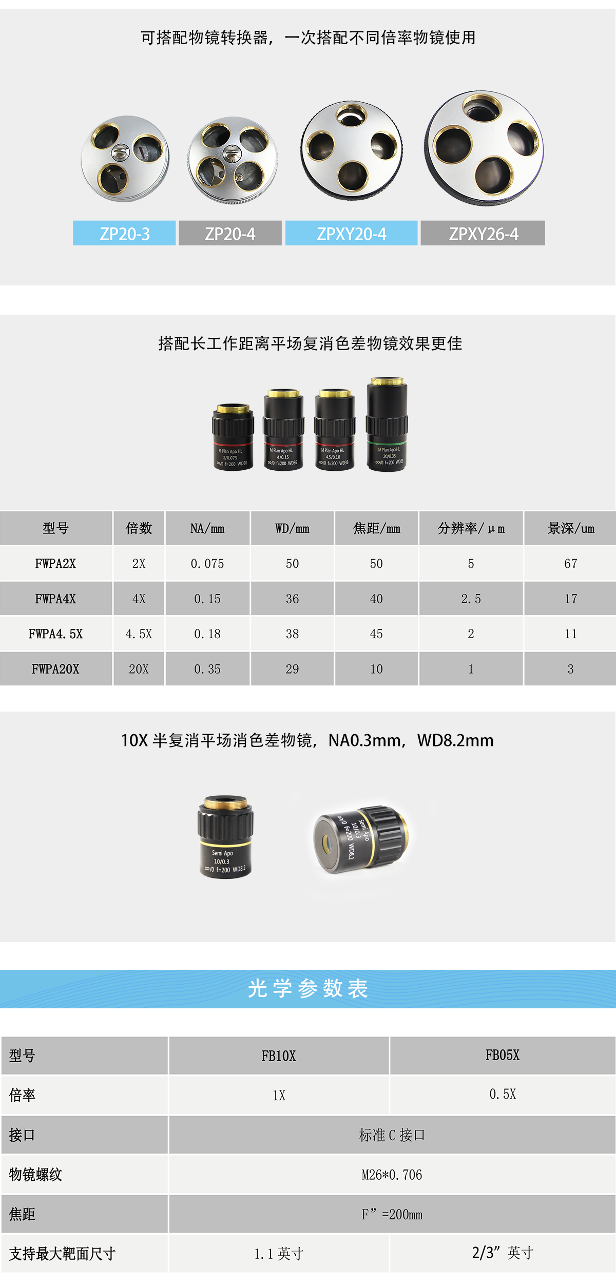• FB10X/FB05X 1X/0.5X 光学管镜